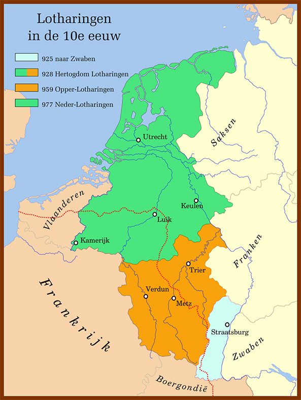 In 959 splitst Bruno Lotharingen op in twee delen: