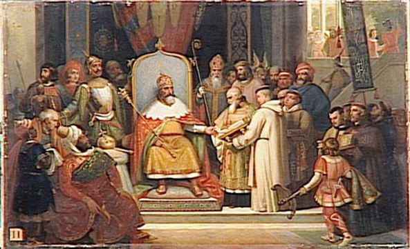 Van evangelisatie was geen sprake, het ging alleen over onvoorwaardelijke onderwerping aan het schijnbaar zachtaardige juk van het christendom. Een Saksische (!) bron uit de negende eeuw beschrijft Karel - zonder negatief accent! - als 'prediker met de ijzeren tong', die gedeeltelijk met de wapens, gedeeltelijk met geschenken het christendom in Saksen heeft ingevoerd.