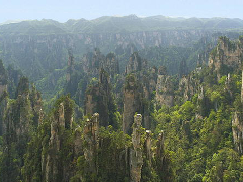 Dit spectaculaire gebied van meer dan 360 km² in de Chinese provincie Hunan heeft ruim 3000 zandstenen pilaren en pieken, waarvan er vele meer dan 200 m hoog zijn. Tussen de pieken liggen ravijnen en kloven met beken, poelen en watervallen. De locatie bevat ook een aantal karstformaties en in het bijzonder zo'n 40 grotten die vaak in het oog springende kalkafzettingen hebben. Er zijn ook twee opzienbarende natuurlijke bruggen: Xianreqias (Brug van de Onsterfelijken) en Tianqiashengkong (Brug door de Hemel) die op 357 m boven de valleibodem waarschijnlijk de hoogste natuurlijke brug ter wereld is. Naast de opvallende schoonheid van het landschap is de streek ook bekend door een aantal bedreigde planten- en dierensoorten.